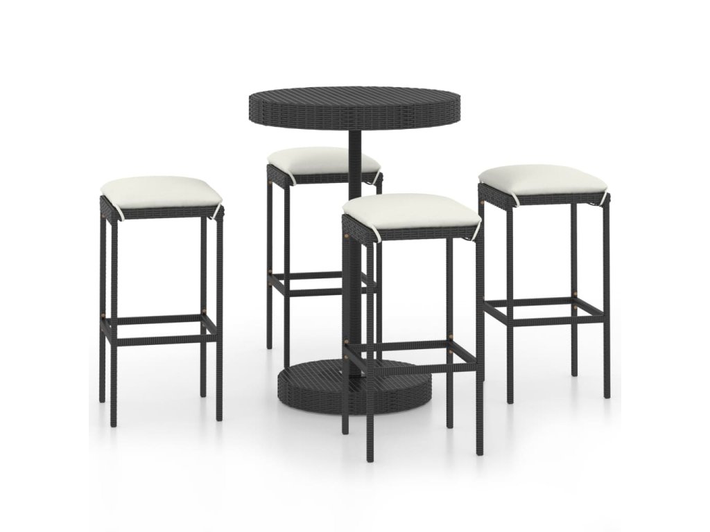 vidaXL 5-dielna záhradná barová súprava s vankúšmi čierna polyratanová