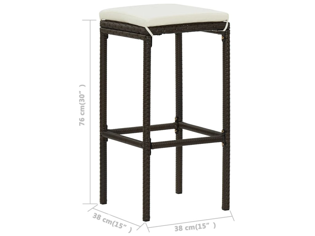 Barová súprava je vyrobená z PE ratanu, ktorý je vodovzdorný a odolný voči poveternostným vplyvom. Dá sa ľahko očistiť, je trvácna a vhodná aj na každodenné používanie. Oceľový rám s práškovou povrchovou úpravou dodáva všetkým položkám potrebnú stabilitu a odolnosť. Vďaka ľahkej konštrukcii sa dajú bez námahy presúvať. Hrubé, odnímateľné podložky na sedadlo poskytujú optimálne pohodlie. Podložky na sedadlo majú poťahy na zips, ktoré môžete jednoducho zvliecť a oprať.