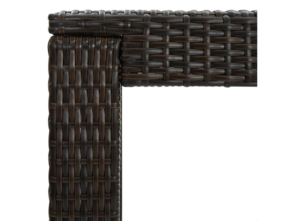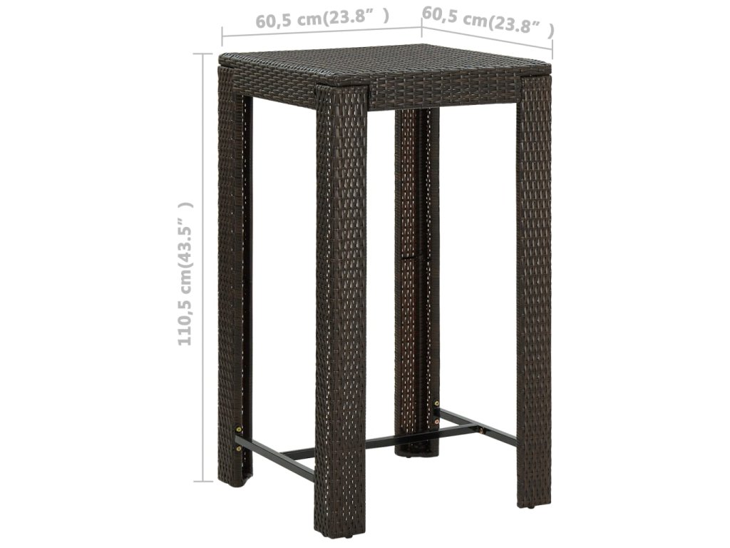 Barový stôl je opatrený oceľovým rámom s práškovanou povrchovou úpravou, vďaka čomu je stabilný a odolný. Štvorcová stolová doska je ideálna na položenie nápojov, jedla alebo dekoratívnych predmetov. Stoličky majú pevnú konštrukciu z oceľového rámu a sú vyrobené z PE ratanu odolného voči poveternostným vplyvom, čo zaisťuje ich stabilitu a ľahké premiestňovanie. Vankúš a opierka nôh tiež zvyšujú pohodlie pri sedení na stoličke. Poťah vankúša z polyesteru so skrytým zipsom uľahčuje čistenie.