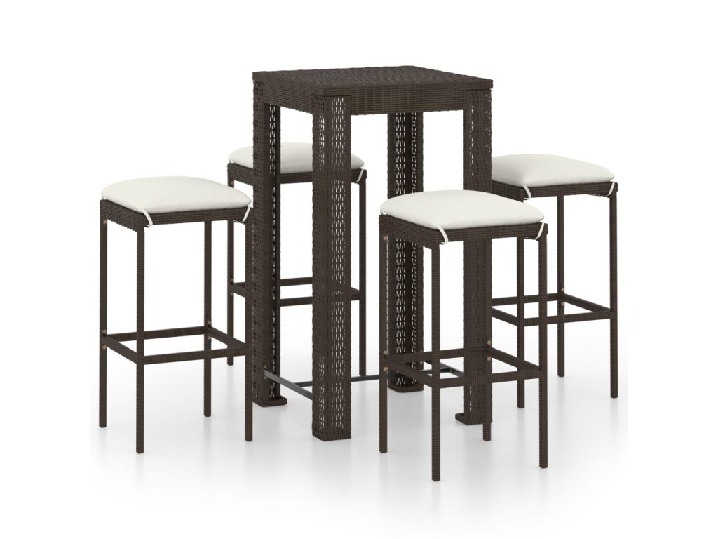 vidaXL 5-dielna záhradná barová súprava s vankúšmi polyratanová hnedá