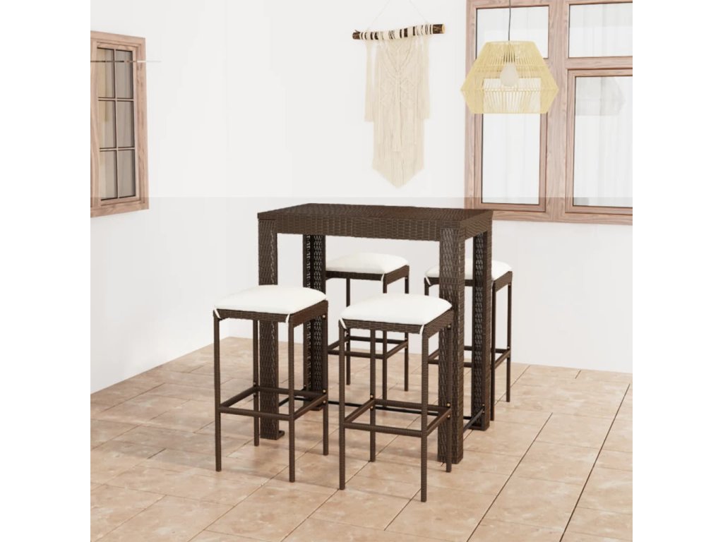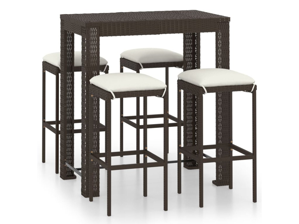 vidaXL 5-dielna záhradná barová súprava s vankúšmi polyratanová hnedá