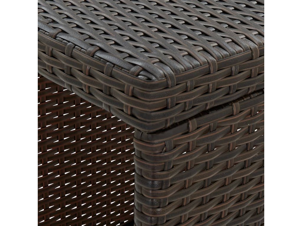 Barová súprava je vyrobená z PE ratanu, ktorý je vodovzdorný a odolný voči poveternostným vplyvom. Dá sa ľahko očistiť, je trvácna a vhodná aj na každodenné používanie. Oceľový rám s práškovou povrchovou úpravou dodáva všetkým položkám potrebnú stabilitu a odolnosť. Vďaka ľahkej konštrukcii sa dajú bez námahy presúvať. Hrubé, odnímateľné podložky na sedadlo poskytujú optimálne pohodlie. Podložky na sedadlo majú poťahy na zips, ktoré môžete jednoducho zvliecť a oprať.