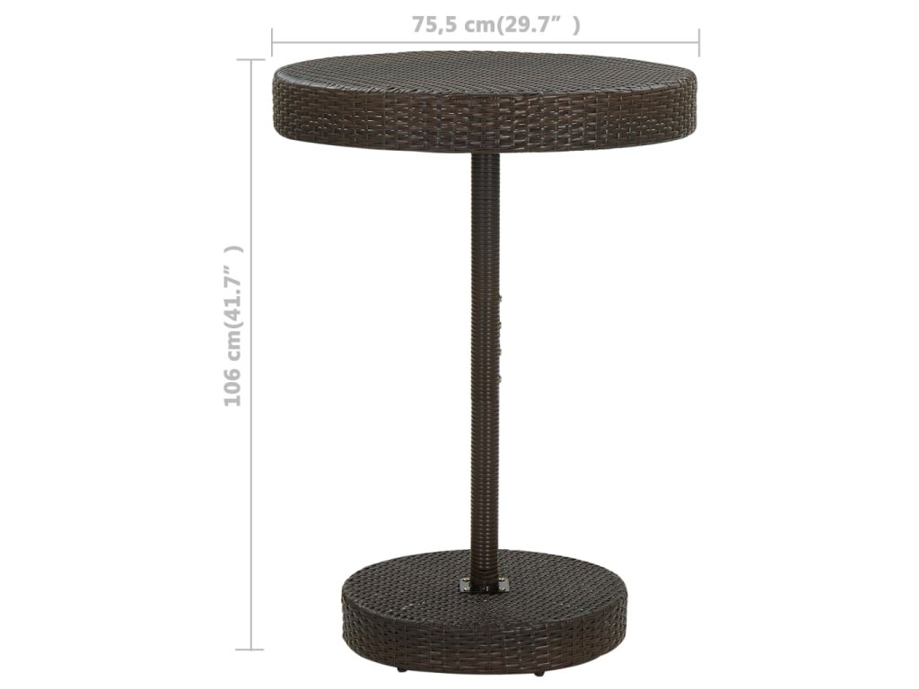 Barový stôl je opatrený oceľovým rámom s práškovanou povrchovou úpravou, vďaka čomu je stabilný a odolný. Okrúhla stolová doska je ideálna na položenie nápojov, jedla alebo dekoratívnych predmetov. Stoličky majú pevnú konštrukciu z oceľového rámu a sú vyrobené z PE ratanu odolného voči poveternostným vplyvom, čo zaisťuje ich stabilitu a ľahké premiestňovanie. Vankúš a opierka nôh tiež zvyšujú pohodlie pri sedení na stoličke. Poťah vankúša z polyesteru so skrytým zipsom uľahčuje čistenie.