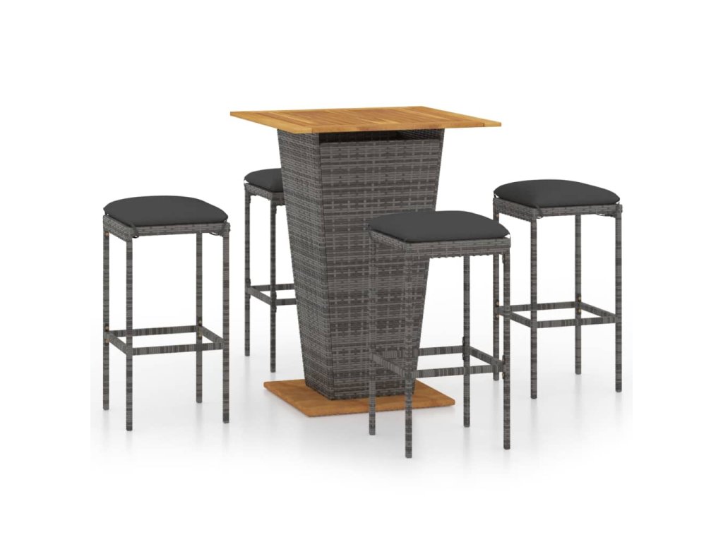 vidaXL 5-dielna záhradná barová súprava s vankúšmi polyratanová sivá