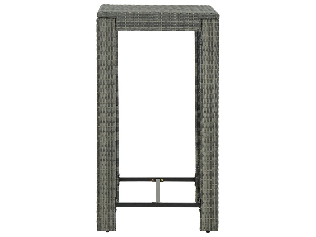 Barový stôl je opatrený oceľovým rámom s práškovanou povrchovou úpravou, vďaka čomu je stabilný a odolný. Štvorcová stolová doska je ideálna na položenie nápojov, jedla alebo dekoratívnych predmetov. Stoličky majú pevnú konštrukciu z oceľového rámu a sú vyrobené z PE ratanu odolného voči poveternostným vplyvom, čo zaisťuje ich stabilitu a ľahké premiestňovanie. Vankúš a opierka nôh tiež zvyšujú pohodlie pri sedení na stoličke. Poťah vankúša z polyesteru so skrytým zipsom uľahčuje čistenie.