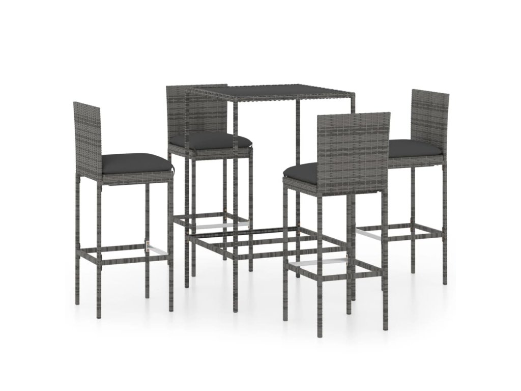 vidaXL 5-dielna záhradná barová súprava s vankúšmi polyratanová sivá