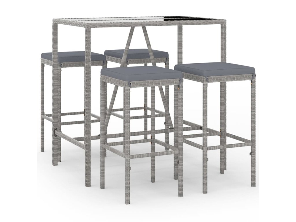 vidaXL 5-dielna záhradná barová súprava s vankúšmi sivá polyratanová