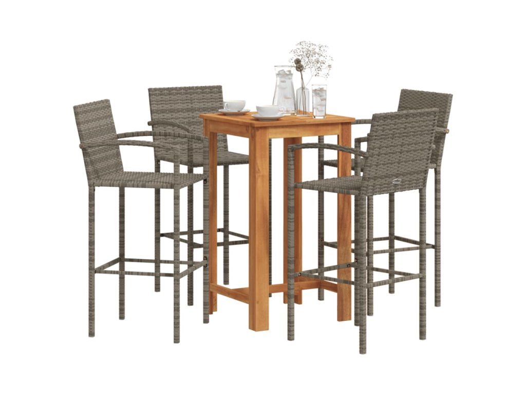 vidaXL 5-dielna záhradná barová súprava sivá polyratan masívna akácia