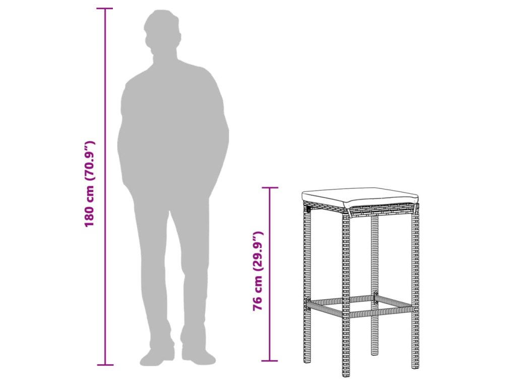 - Odolný materiál: PE ratan, tiež známy ako polyratan, je silný syntetický materiál nenáročný na údržbu, ktorý vyzerá ako prírodný ratan. Je ľahký, dobre sa čistí a bežne sa používa na vonkajší nábytok vďaka svojej trvácnosti a odolnosti voči poveternostným vplyvom. Tieto barové stoličky sú vyrobené z ľahkého ratanu PE, sú stabilné a ľahko sa prenášajú.
