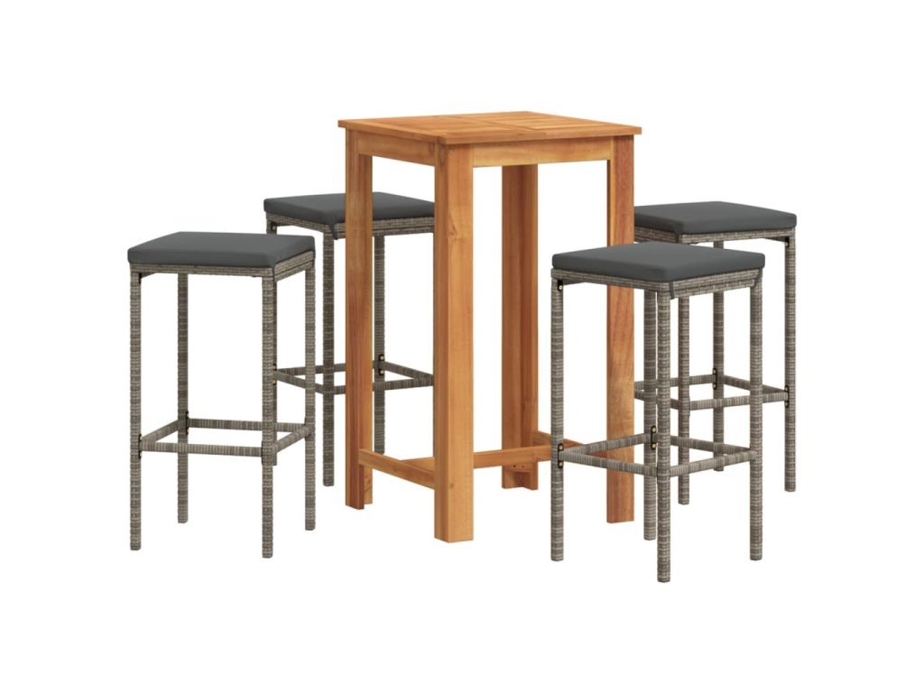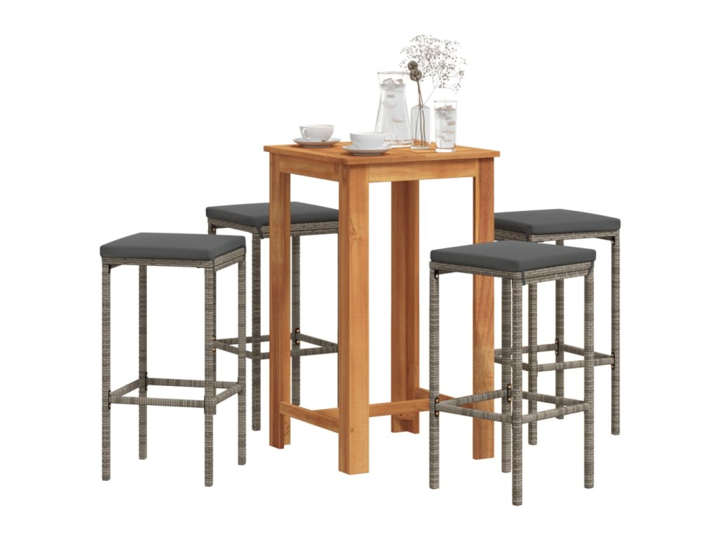 vidaXL 5-dielna záhradná barová súprava sivá polyratan masívna akácia