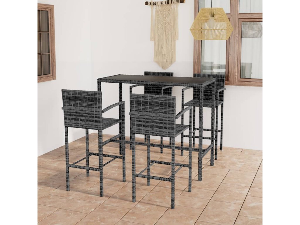 vidaXL 5-dielna záhradná barová súprava sivá polyratanová