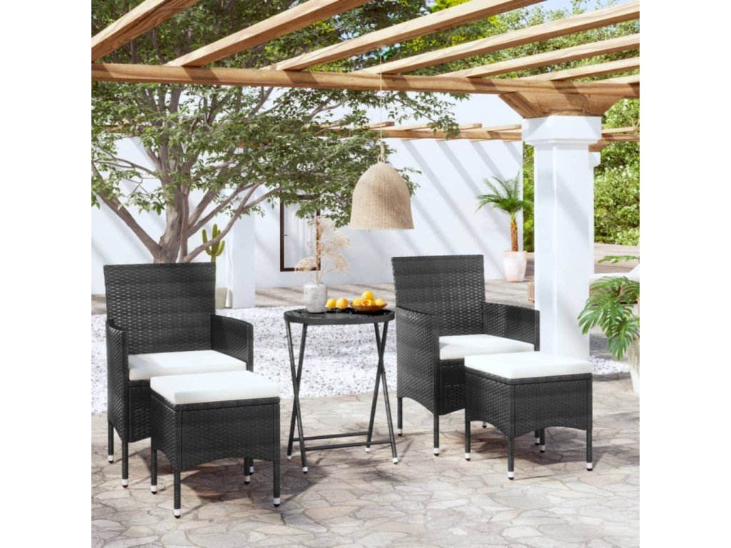 vidaXL 5-dielna záhradná bistro súprava polyratan tvrdené sklo čierna