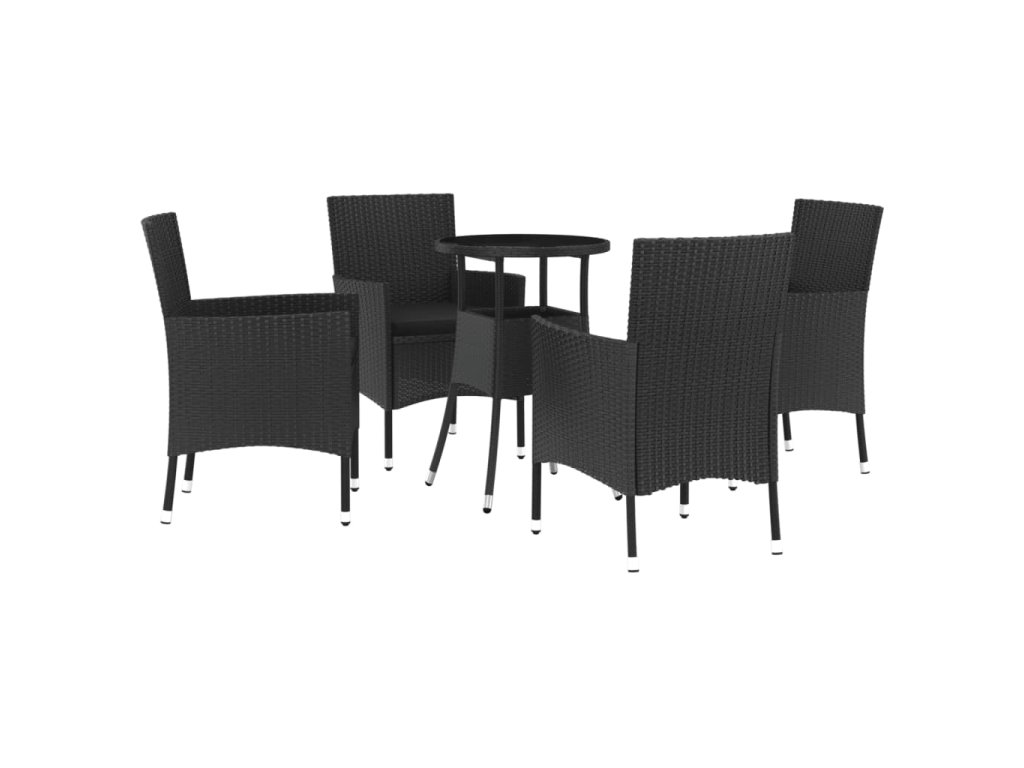 vidaXL 5-dielna záhradná bistro súprava s vankúšmi čierna polyratan