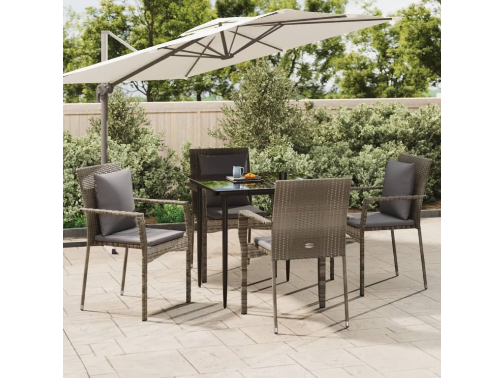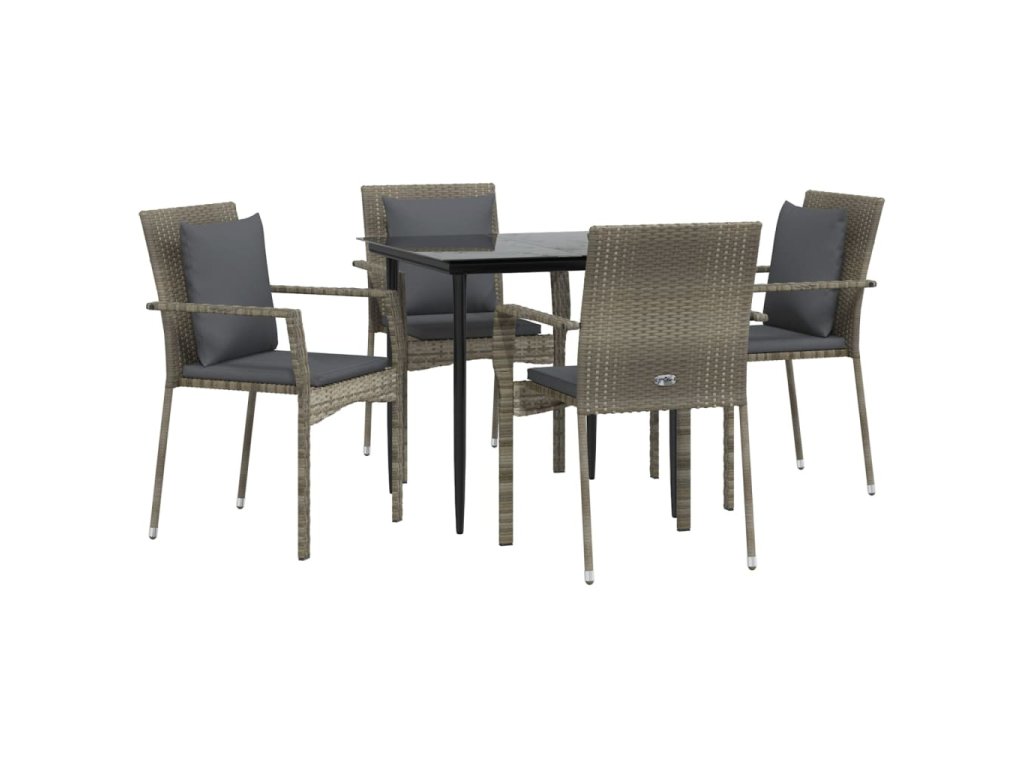 vidaXL 5-dielna záhradná jedál. sada s vankúšmi čierno-sivá polyratan