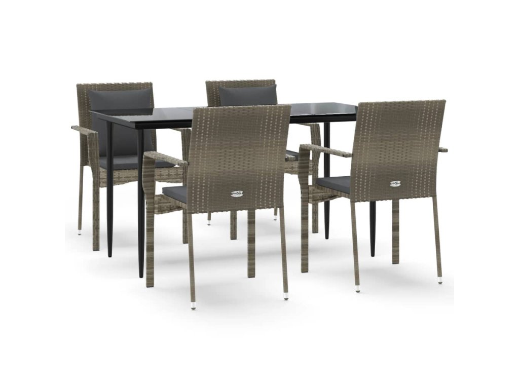 vidaXL 5-dielna záhradná jedál. sada s vankúšmi čierno-sivá polyratan