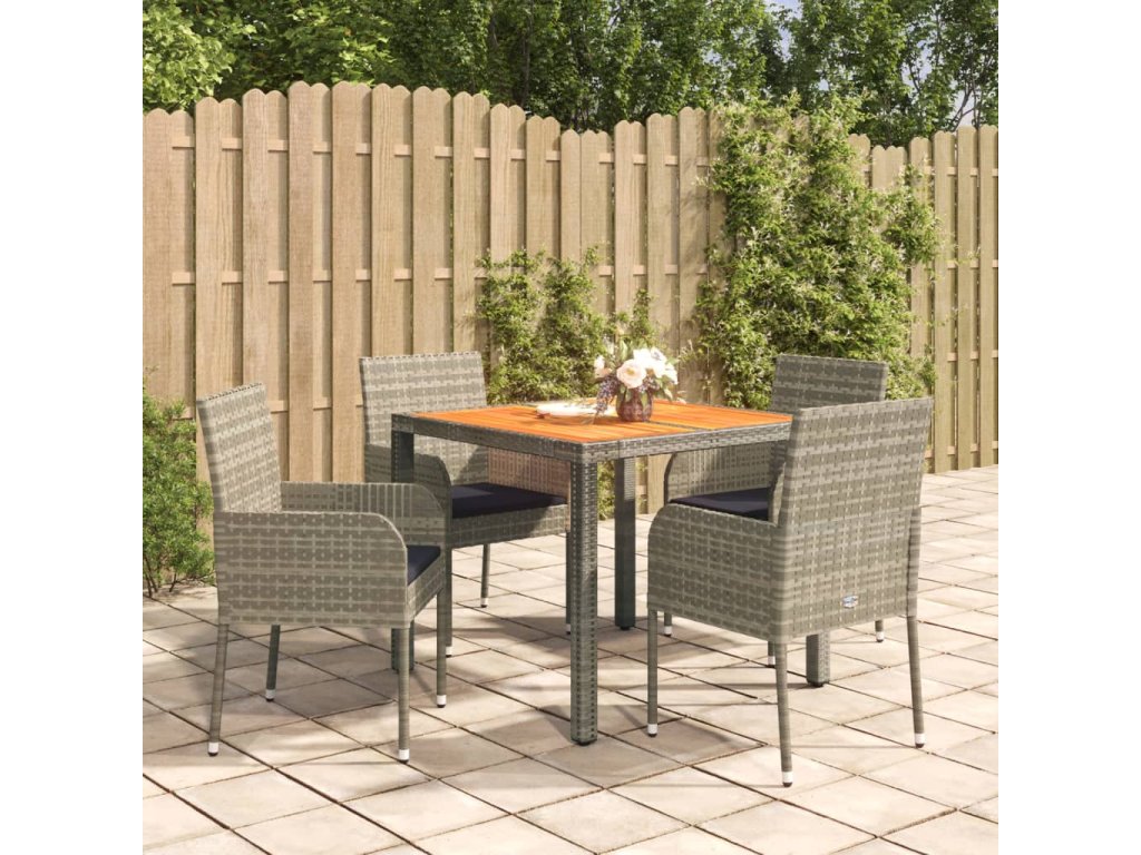 vidaXL 5-dielna záhradná jedálenská sada s podložkami sivá polyratan