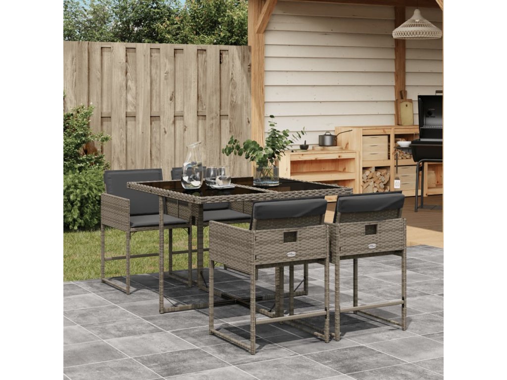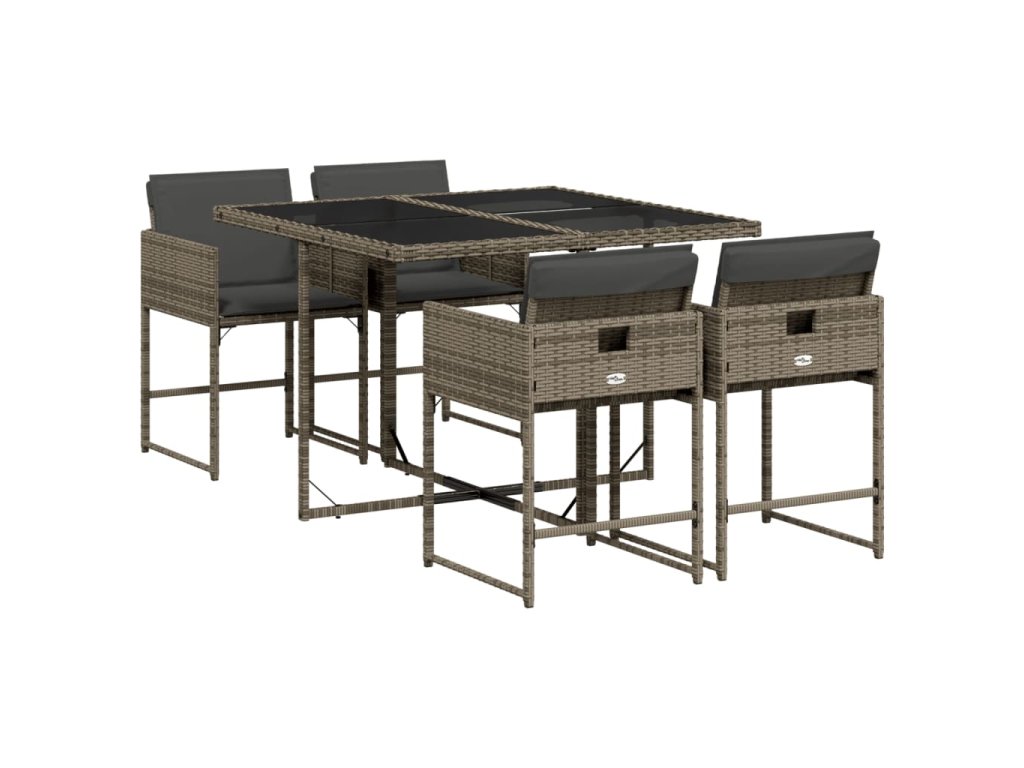 vidaXL 5-dielna záhradná jedálenská sada s podložkami sivá polyratan