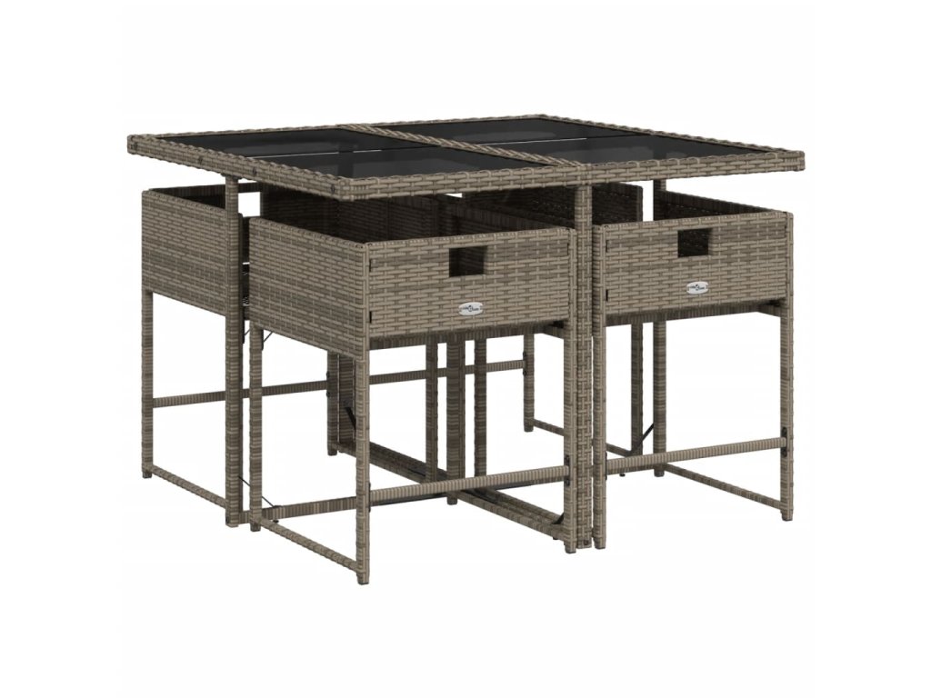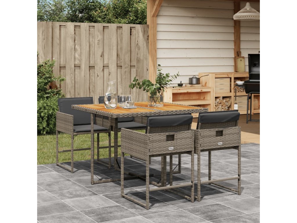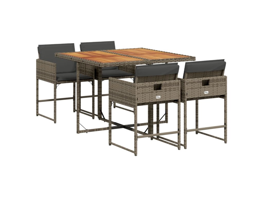 vidaXL 5-dielna záhradná jedálenská sada s podložkami sivá polyratan