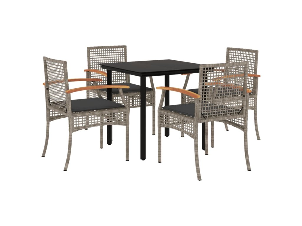 vidaXL 5-dielna záhradná jedálenská sada s podložkami sivá polyratan