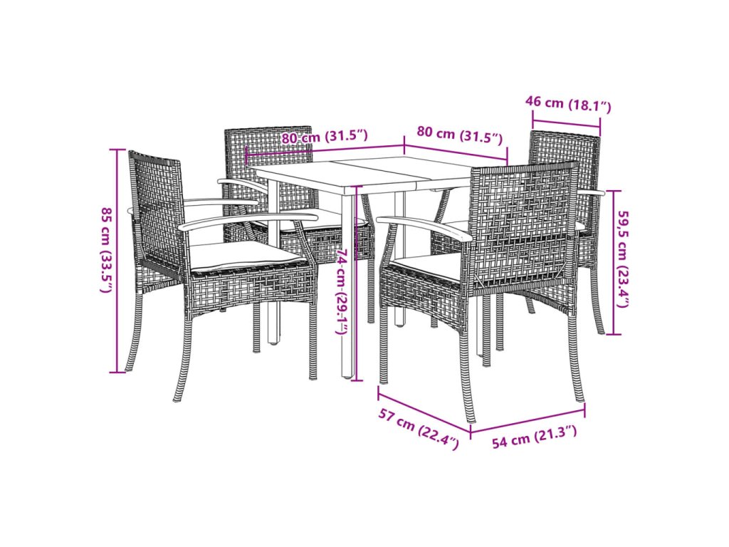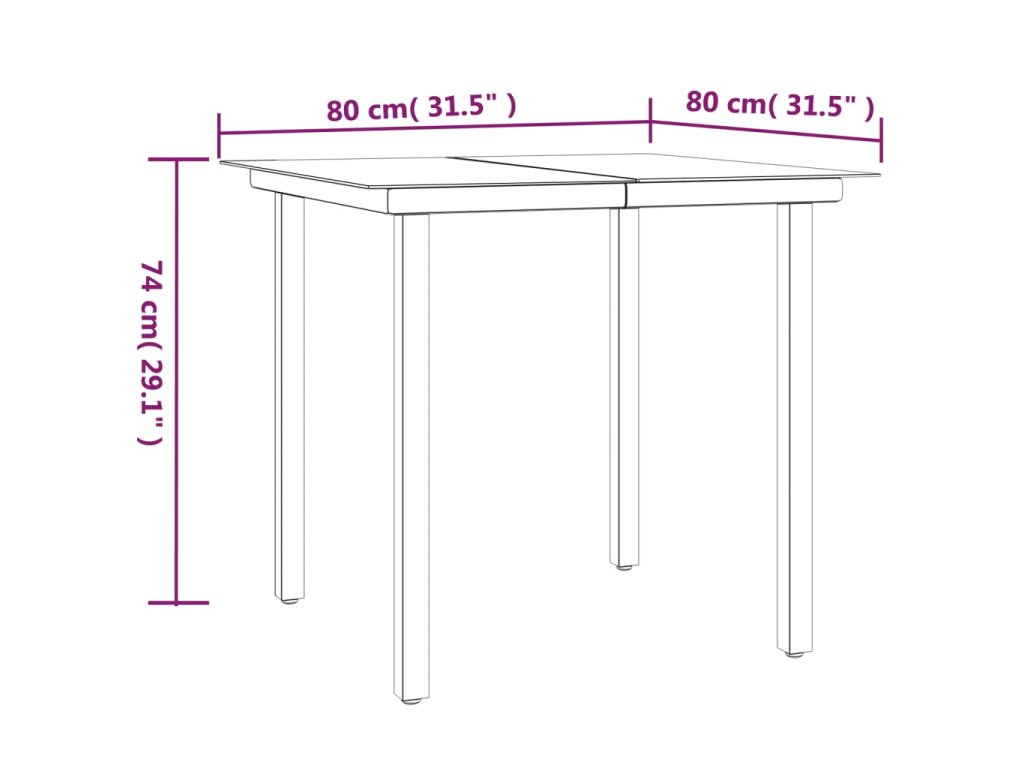 - Rozmery stola: 80 x 80 x 74 cm (D x Š x V)
