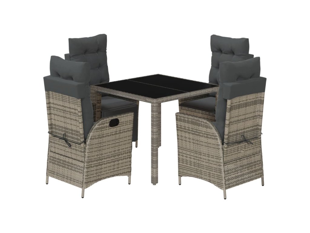 vidaXL 5-dielna záhradná jedálenská sada s podložkami sivá polyratan