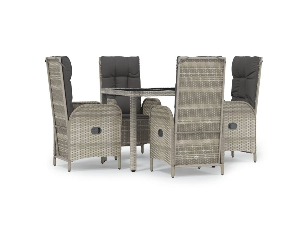 vidaXL 5-dielna záhradná jedálenská sada s podložkami sivá polyratan