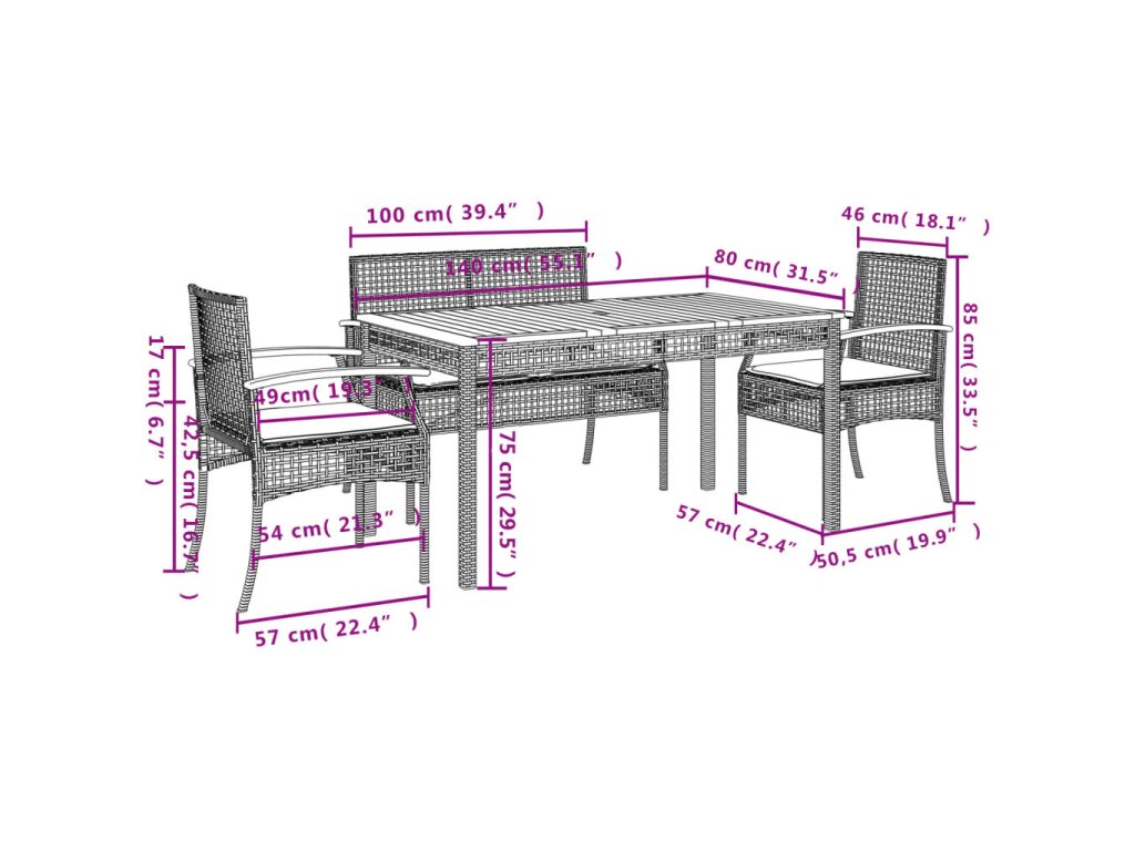 Táto záhradná jedálenská súprava je skvelou voľbou na stolovanie pod holým nebom alebo len tak na oddych v záhrade, na dvore alebo na terase.