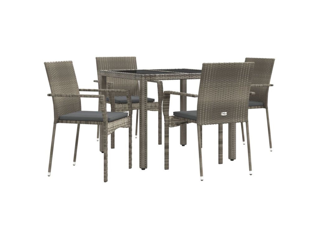 vidaXL 5-dielna záhradná jedálenská sada s podložkami sivá polyratan