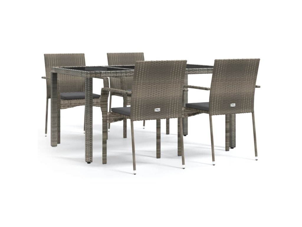 vidaXL 5-dielna záhradná jedálenská sada s podložkami sivá polyratan