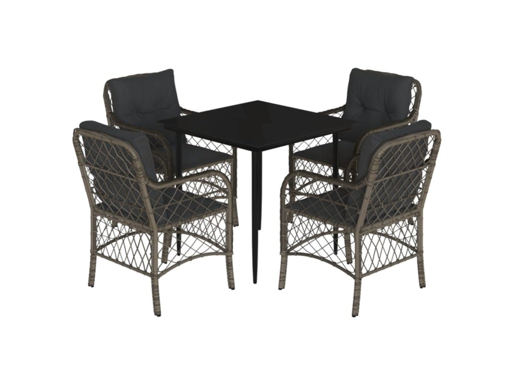 vidaXL 5-dielna záhradná jedálenská sada s podložkami sivá polyratan