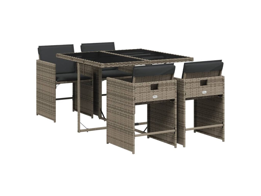 vidaXL 5-dielna záhradná jedálenská sada s podložkami sivá polyratan