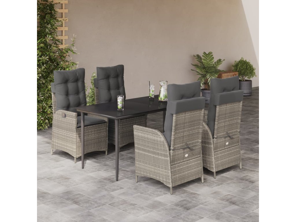 vidaXL 5-dielna záhradná jedálenská sada vankúše bledosivá polyratan