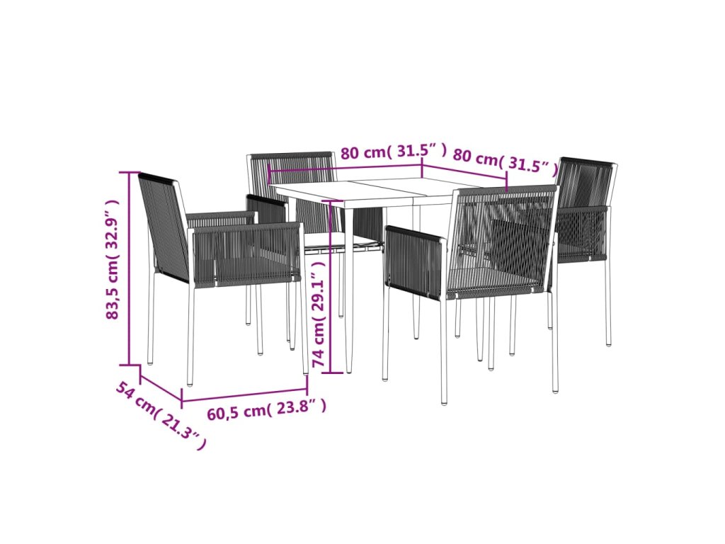vidaXL 5-dielna záhradná jedálenská sada vankúše čierna polyratan oceľ