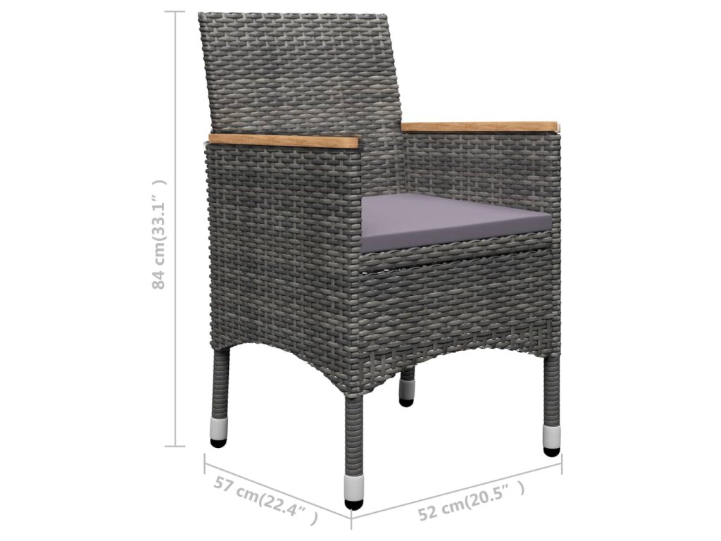 - Materiál: PE (polyetylén) ratan, oceľ s práškovanou povrchovou úpravou, akáciový masív s olejovým náterom