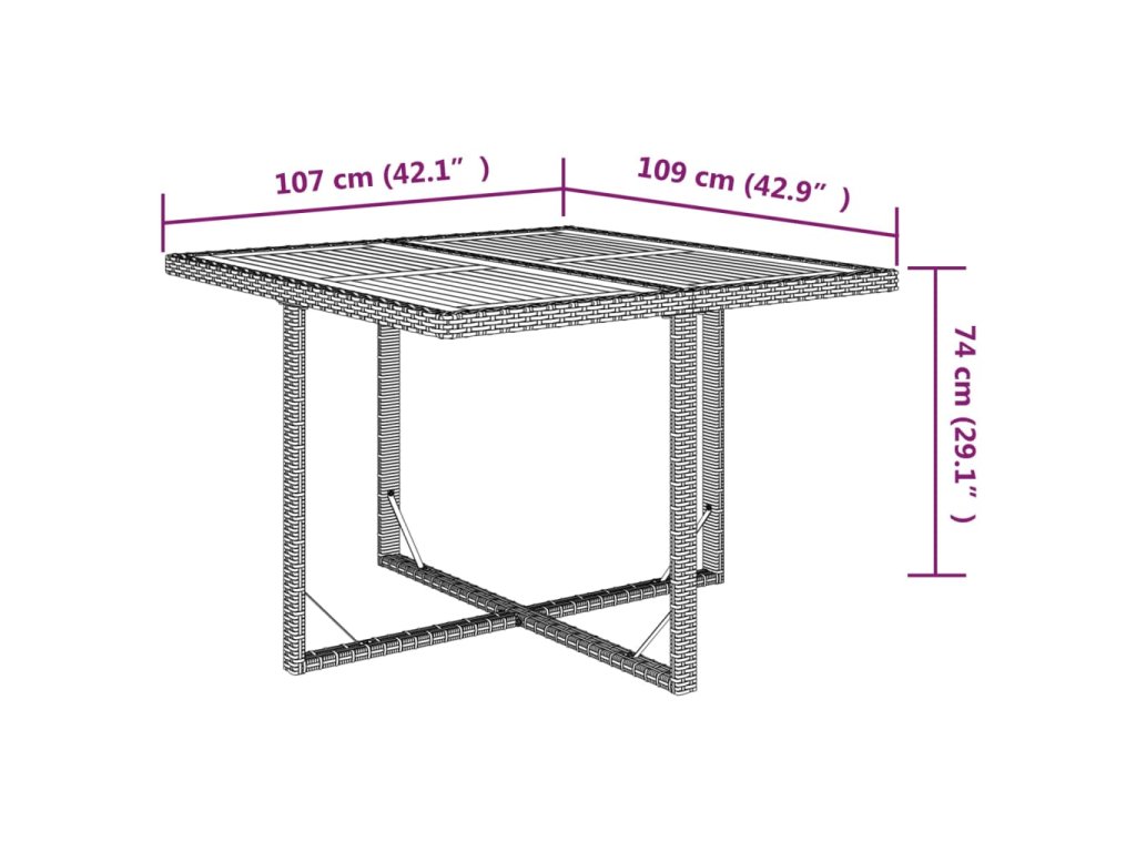 - Rozmery stola: 109 x 107 x 74 cm (D x Š x V)