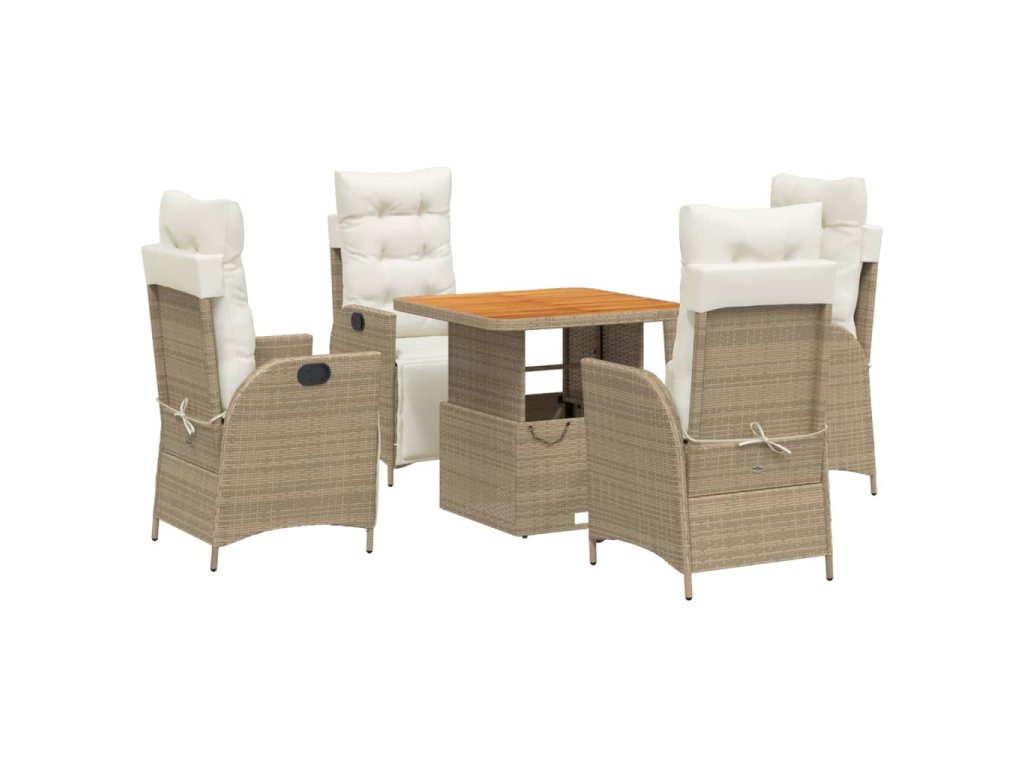 vidaXL 5-dielna záhradná jedálenská súprava a vankúše béžová polyratan