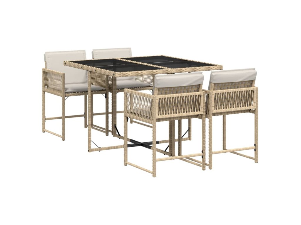 vidaXL 5-dielna záhradná jedálenská súprava a vankúše béžová polyratan