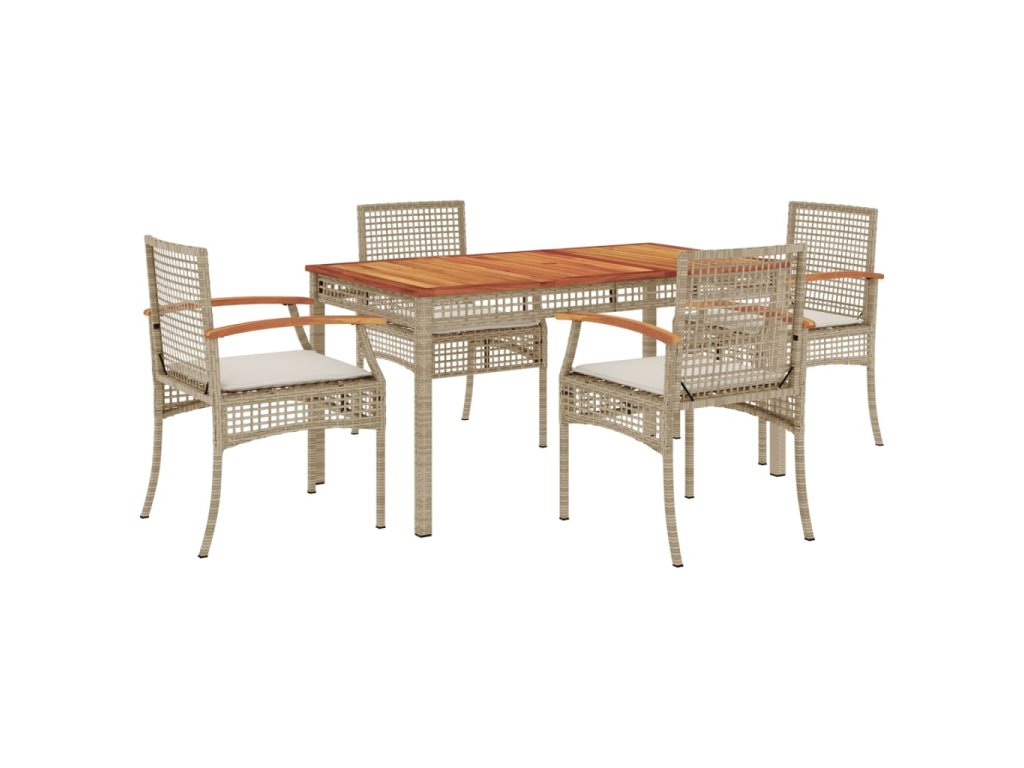 vidaXL 5-dielna záhradná jedálenská súprava a vankúše béžová polyratan