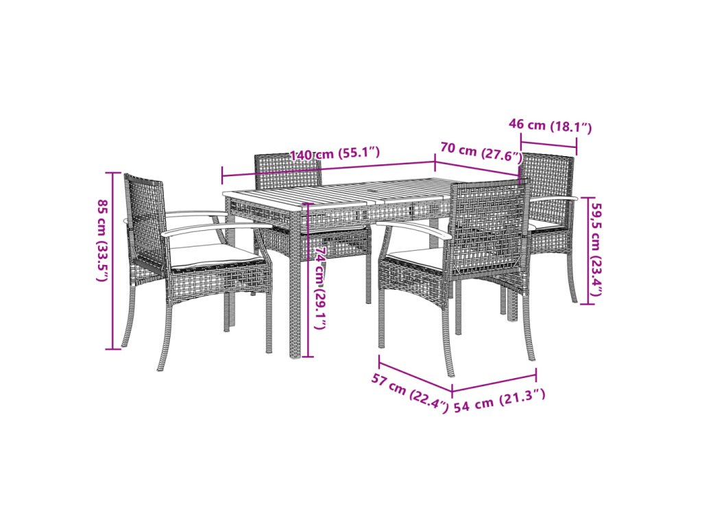 Táto záhradná jedálenská súprava je skvelou voľbou na stolovanie pod holým nebom alebo len tak na oddych v záhrade, na dvore alebo na terase.