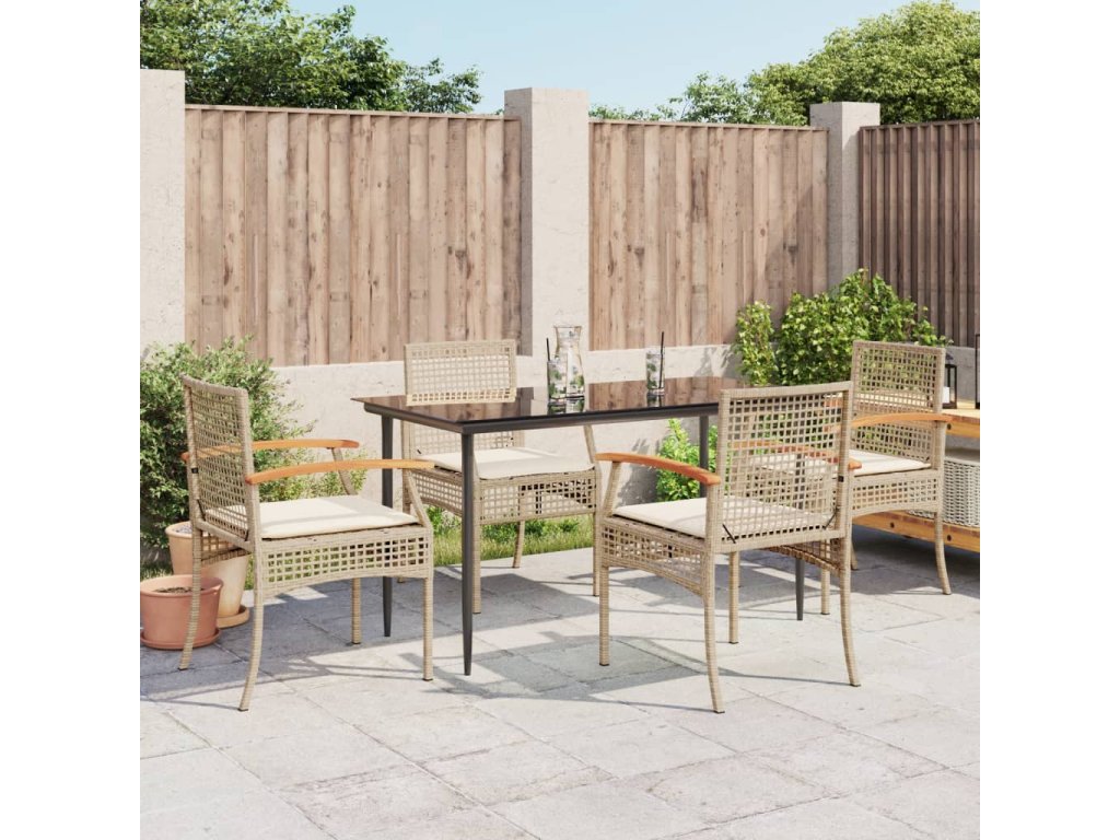 vidaXL 5-dielna záhradná jedálenská súprava a vankúše béžová polyratan