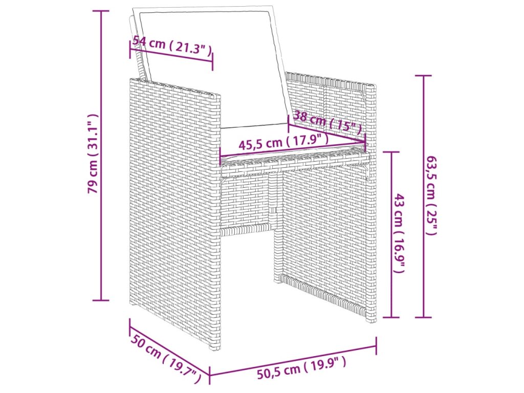 - Materiál: PE ratan, práškovaná oceľ, masívne akáciové drevo s olejovým náterom