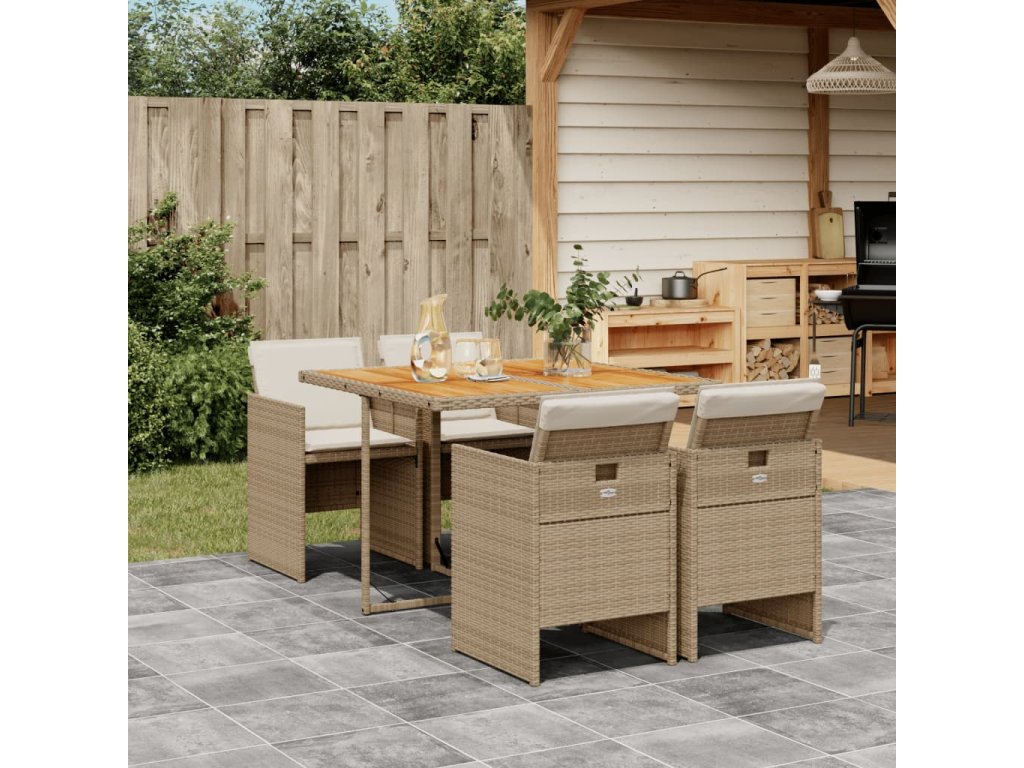 vidaXL 5-dielna záhradná jedálenská súprava a vankúše béžová polyratan