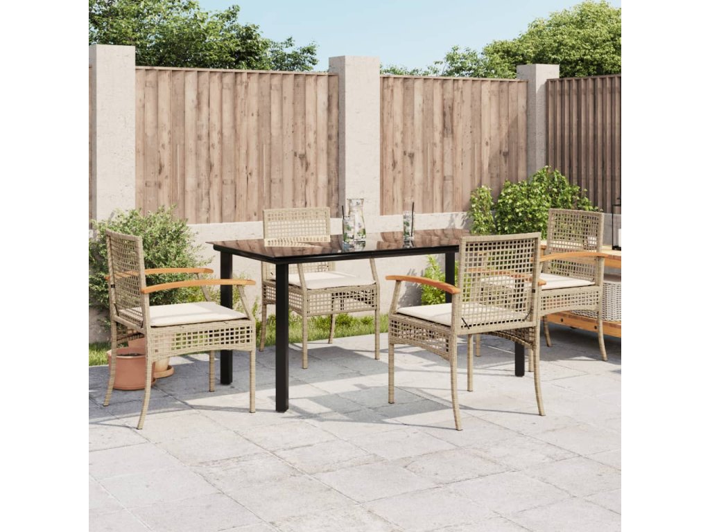 vidaXL 5-dielna záhradná jedálenská súprava a vankúše béžová polyratan