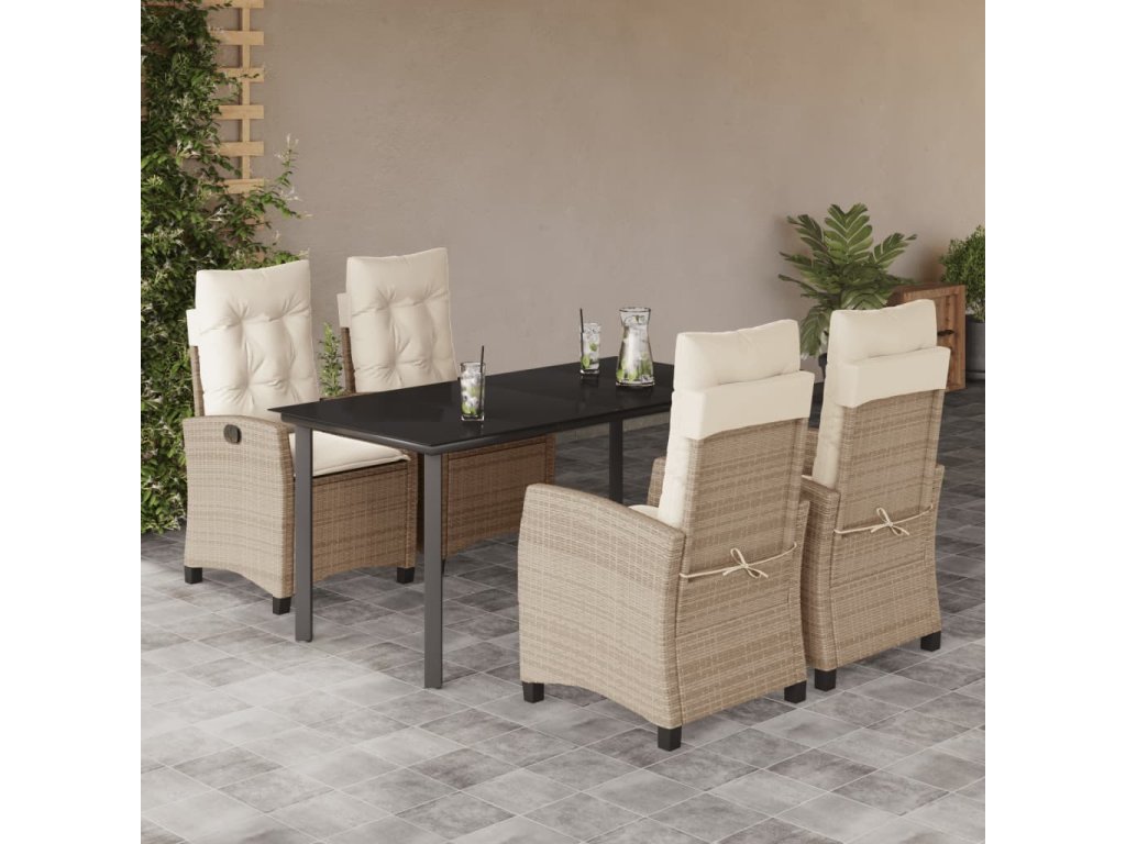vidaXL 5-dielna záhradná jedálenská súprava a vankúše béžová polyratan
