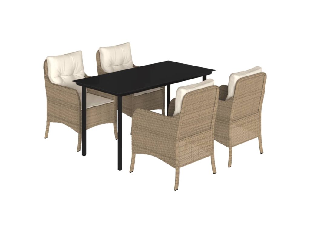 vidaXL 5-dielna záhradná jedálenská súprava a vankúše béžová polyratan