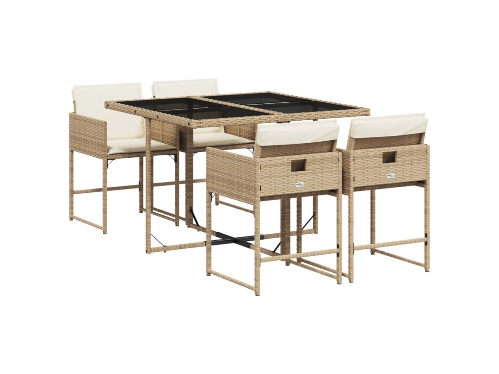 vidaXL 5-dielna záhradná jedálenská súprava a vankúše béžová polyratan