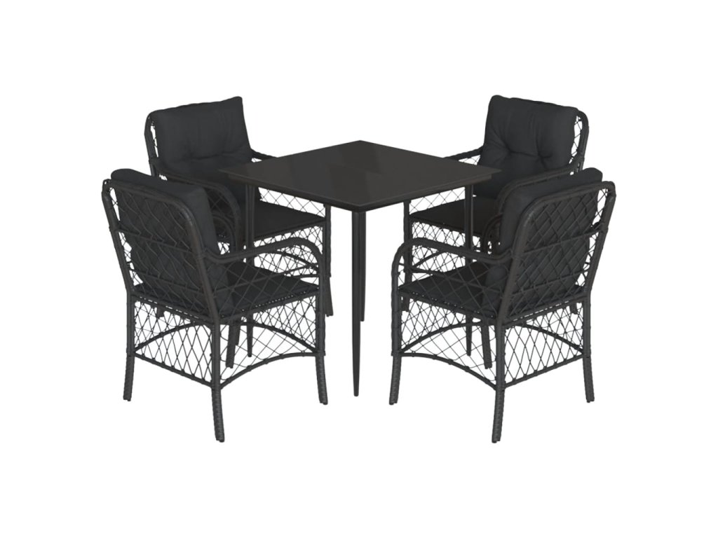 vidaXL 5-dielna záhradná jedálenská súprava a vankúše čierna polyratan