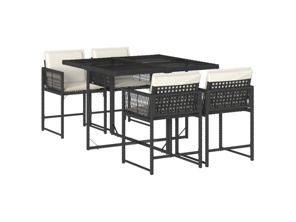 vidaXL 5-dielna záhradná jedálenská súprava a vankúše čierna polyratan