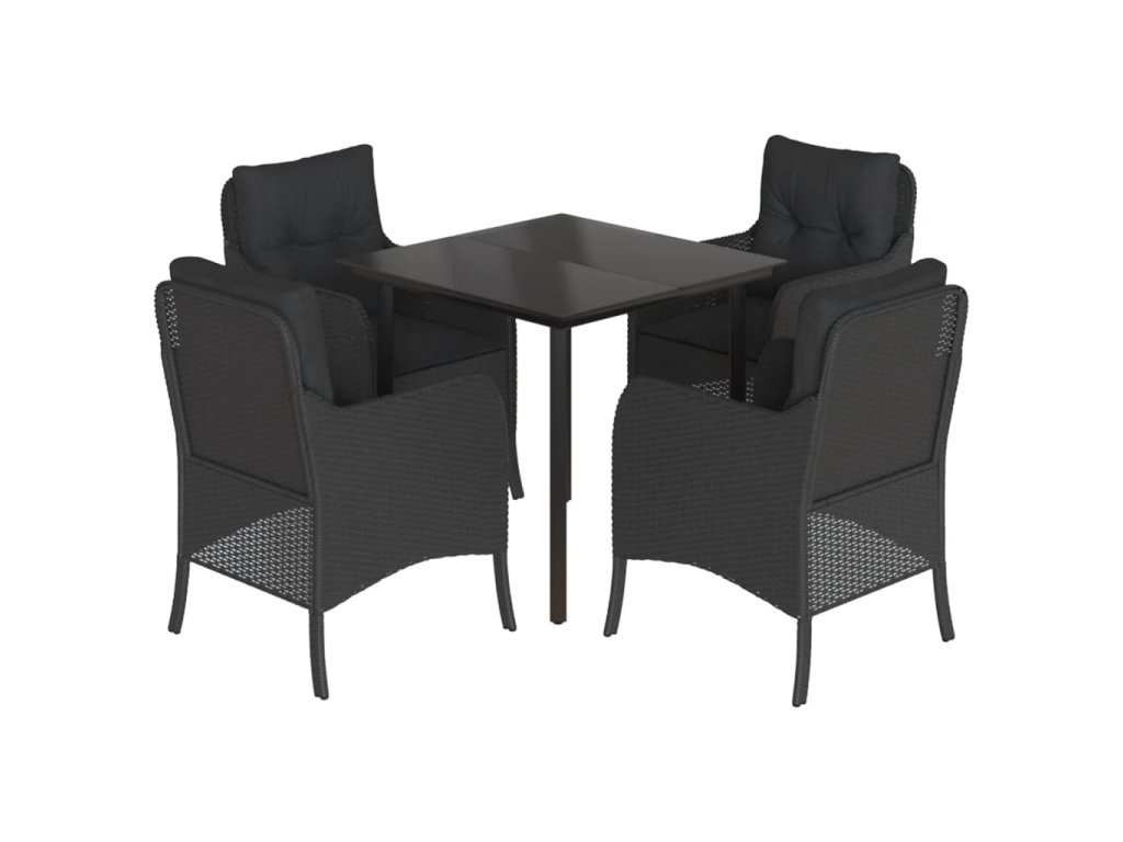vidaXL 5-dielna záhradná jedálenská súprava a vankúše čierna polyratan