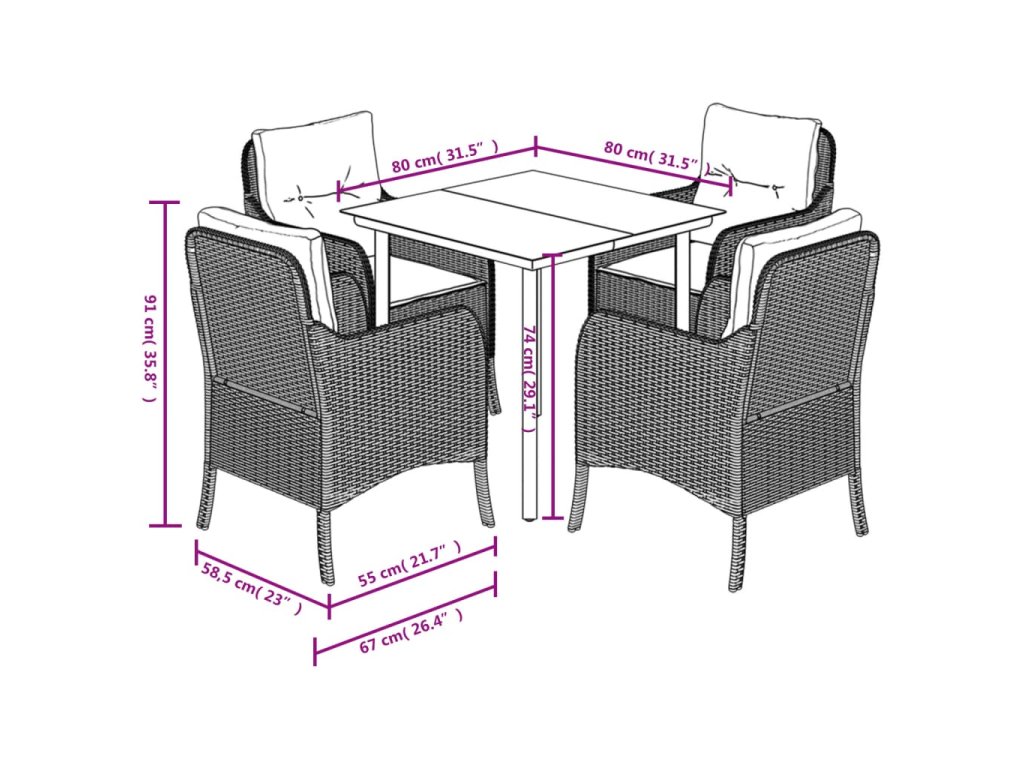 - Rozmery stola: 80 x 80 x 74 cm (D x Š x V)